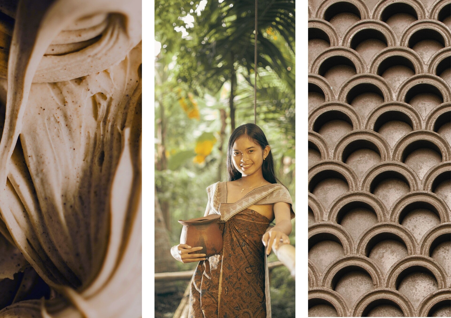 Ijscreme: Pexels-Roman Odintsov/ Balinese vrouw: Pixabay Budi Kaos Hitam/ Houten bogen: Pexels- Mictchel 3UO.