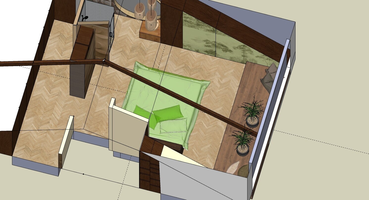 - Gebruik van neutrale- en natuurlijke kleuren en materialen - Weinig kleurgebruik - Badkamer in de ruimte - Inloopkledingkast - 3D tekening maken - creatieve oplossingen bedenken voor schuine stukken - niet symetrisch - Gebruik aaibare stoffen.