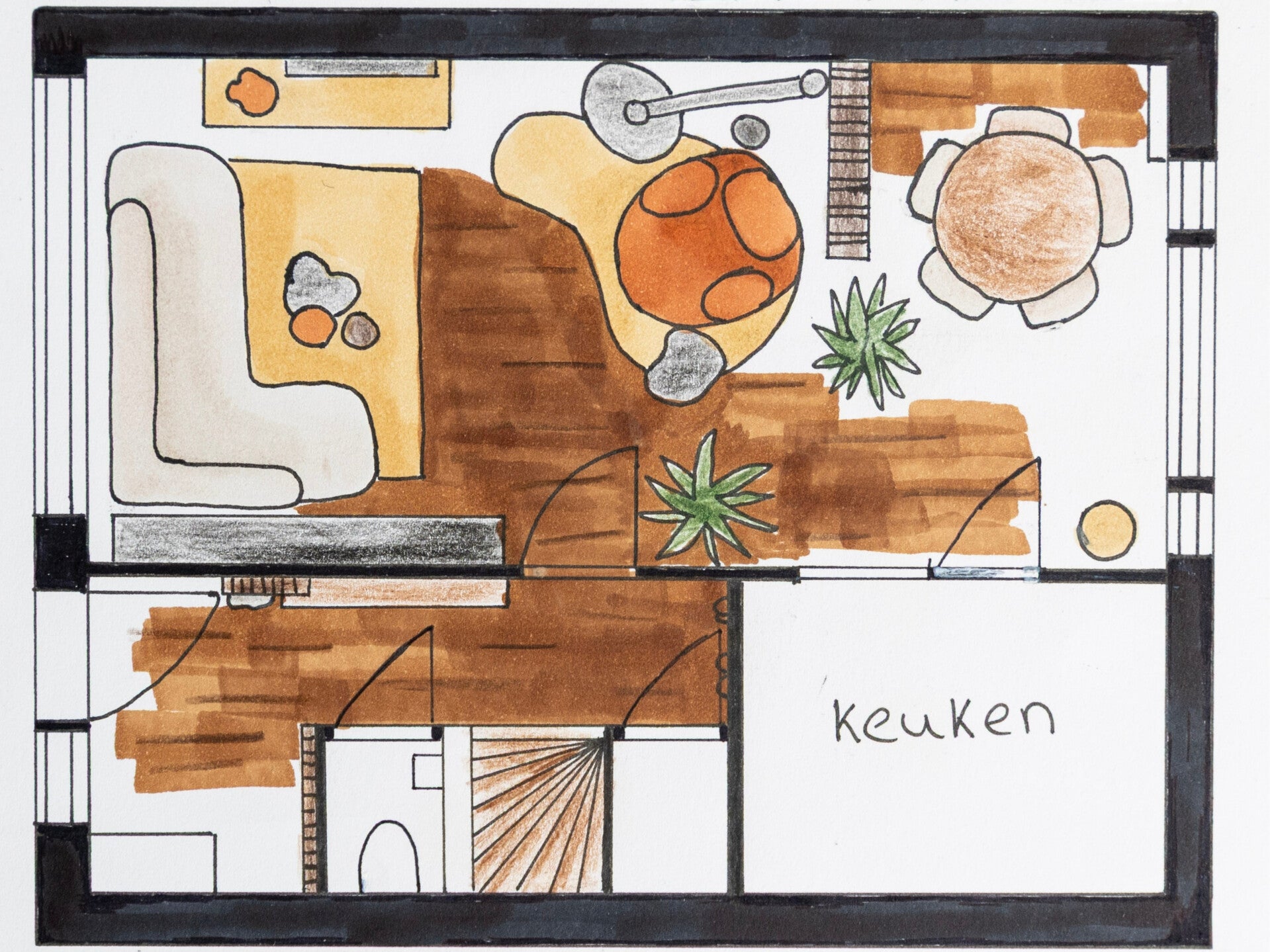 Plattegrond ontwerp van woonkamer/ eetgedeelte