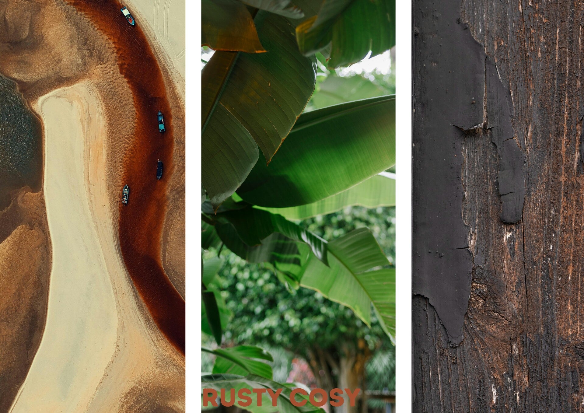Zandvlakte: Pexels-Pok Rie/ Bananenbladeren: Pexels- Alina Skazka/ Zwartbruine boomschors: Pexels- Ellie Burgin.